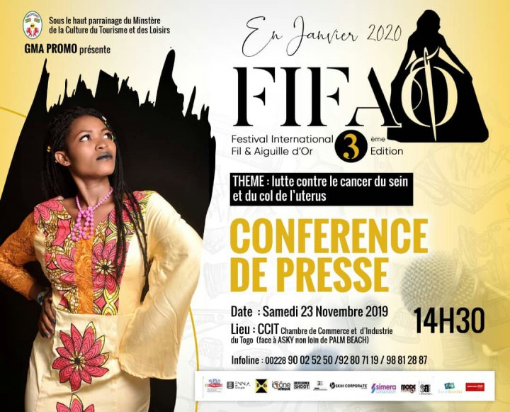 La conférence de presse s’annonce a grand pas, elle aura lieu ce samedi 23 novembre 2019 à la Chambre du Commerce et d’Industrie du Togo 《CCIT》Derrière l’hôtel PALM BEACH non loin de la cour d’appel de Lomé sur le thème: lutte contre le cancer du sein et du col de l’uterus.